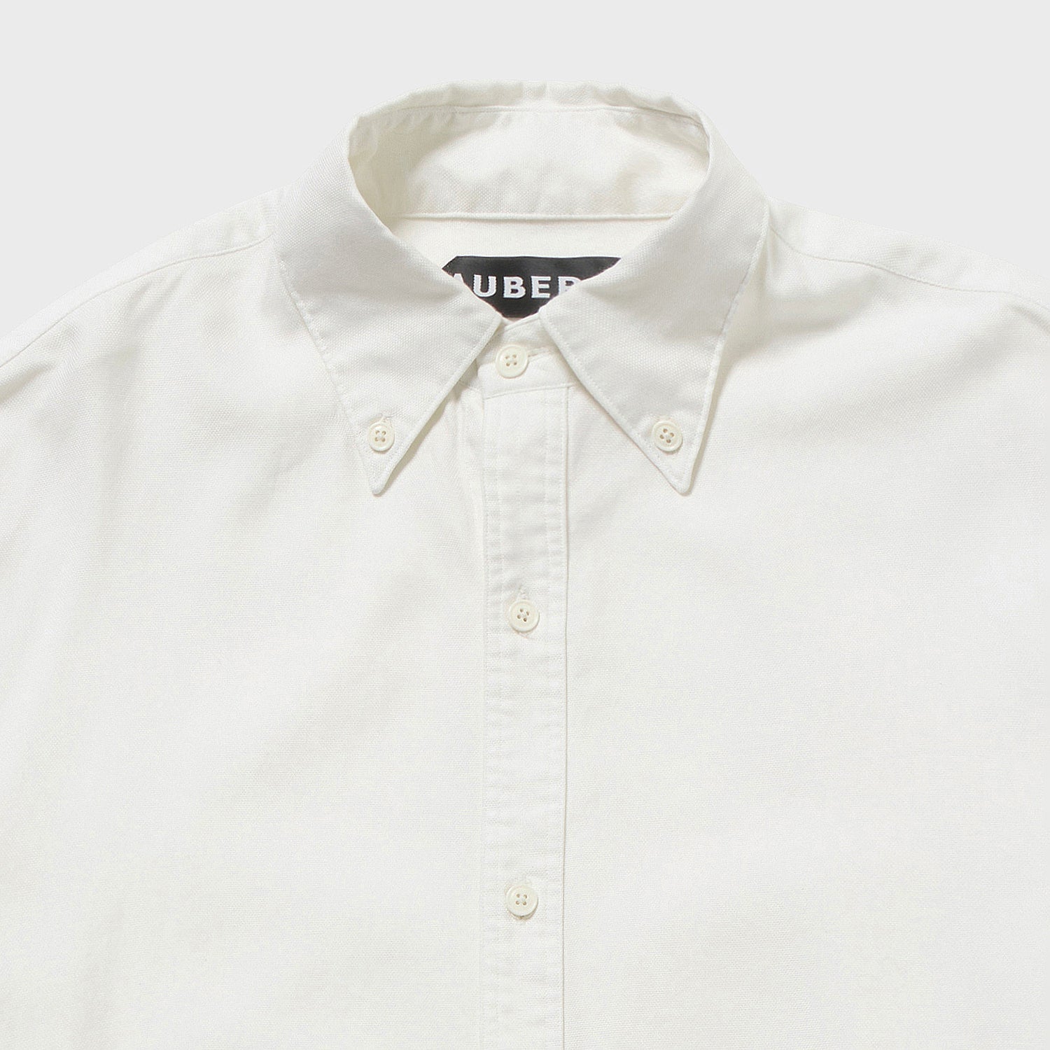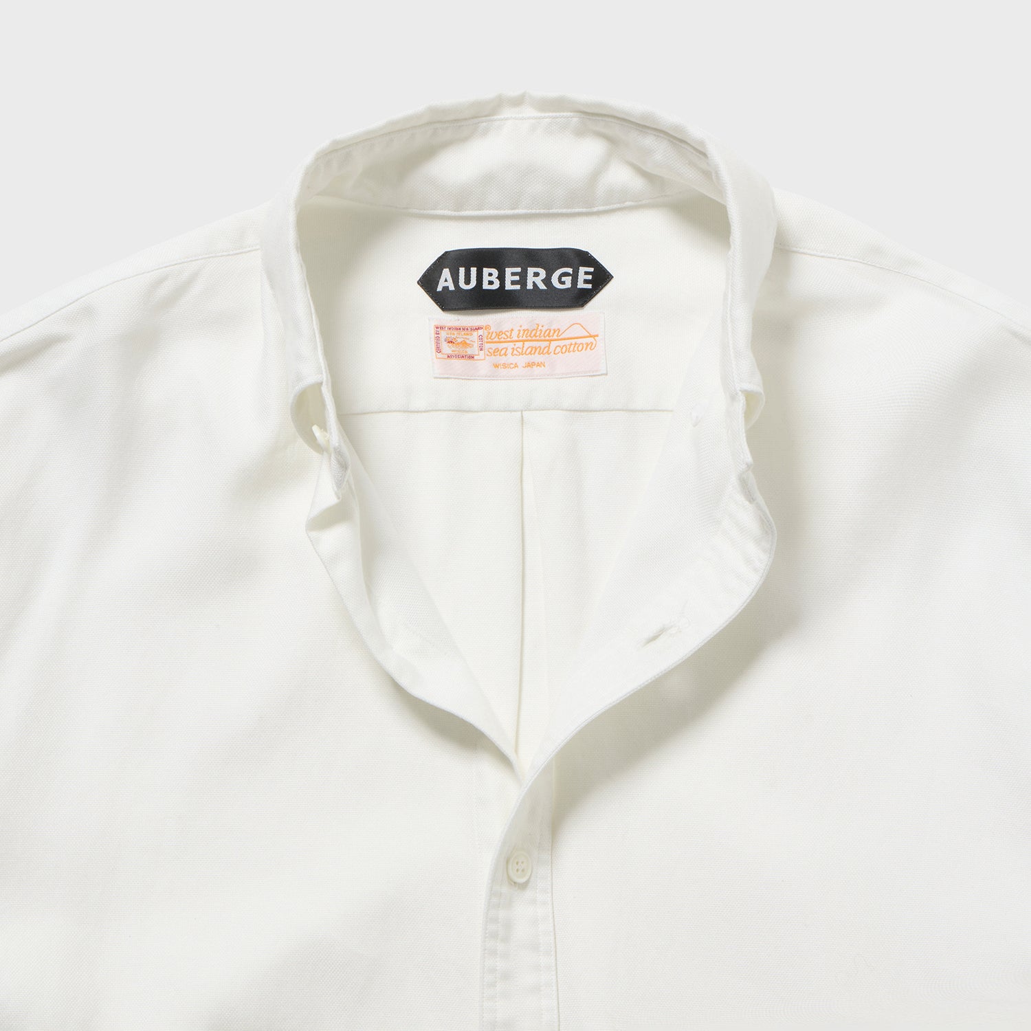 通常、ヨコ糸には太番手の糸を使う事の多いオックスフォード生地ですが今回は中細番手の双糸を2本引きそろえて打ち込むことで、ざっくりした目風を出しながら組織の中で各々の糸が自由に動くようにすることで生地に柔らかさが出るようにしています。仕上げにはピーチ起毛を施し、海島綿の持つしっとりとした究極の質感を存分に味わえるように仕上げました。