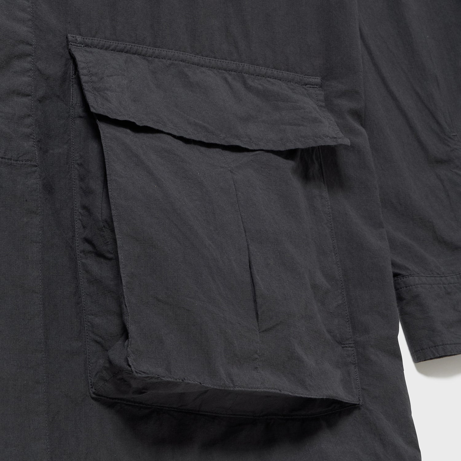 当初のイメージでは、ベトナム戦争期のジャングルファティーグがマッチすると考えましたが、輩感が強めに出るため、今回はカラー・デザインともに少しナイーブなシャツ生地で作ったライトミリタリーを目指し、80年代の海兵隊4パッチJKに仕立てました。