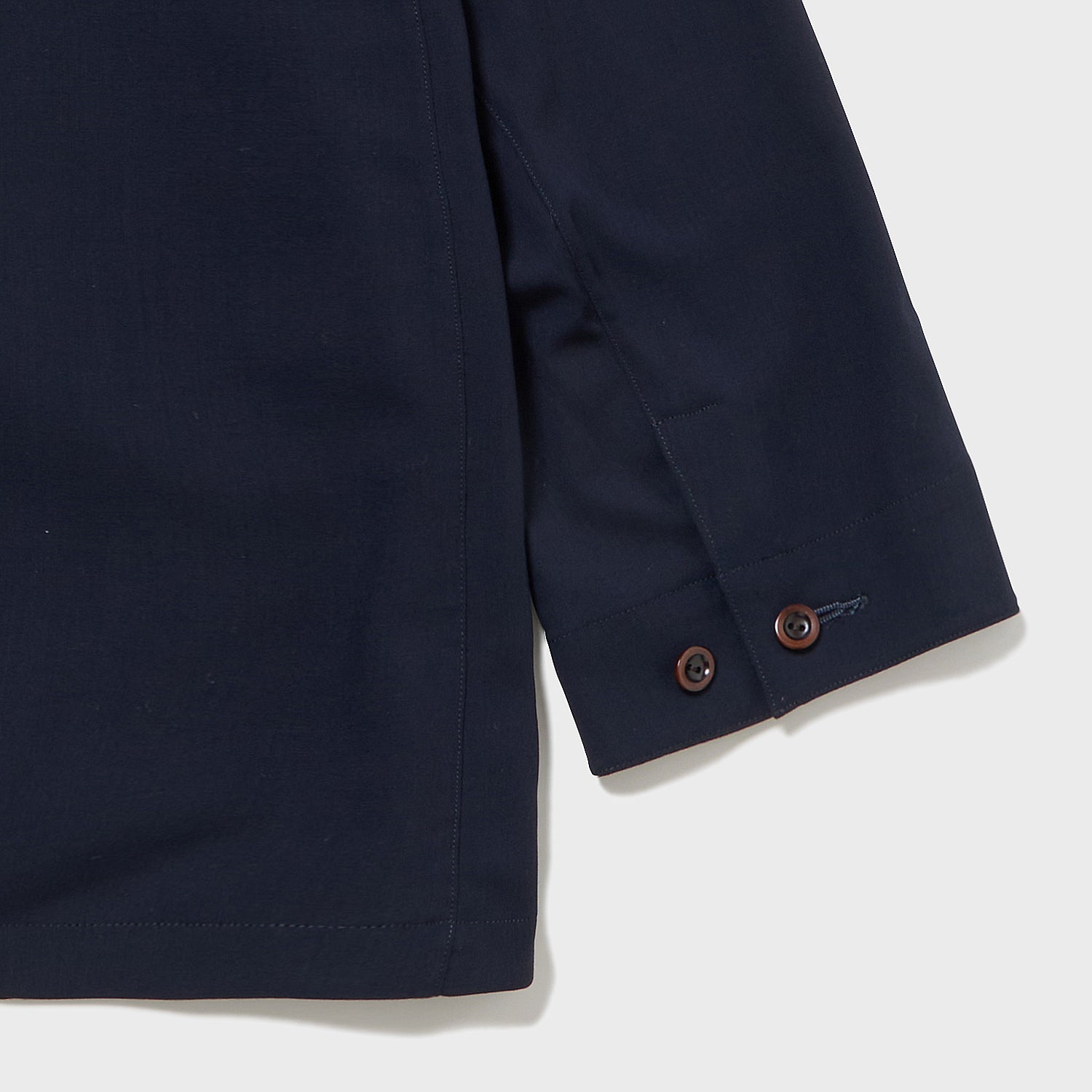 スーパー140’Sをウォッシャブル加工し、そこから強撚糸を作り、2×1綾組織でギャバジンに仕立てました。