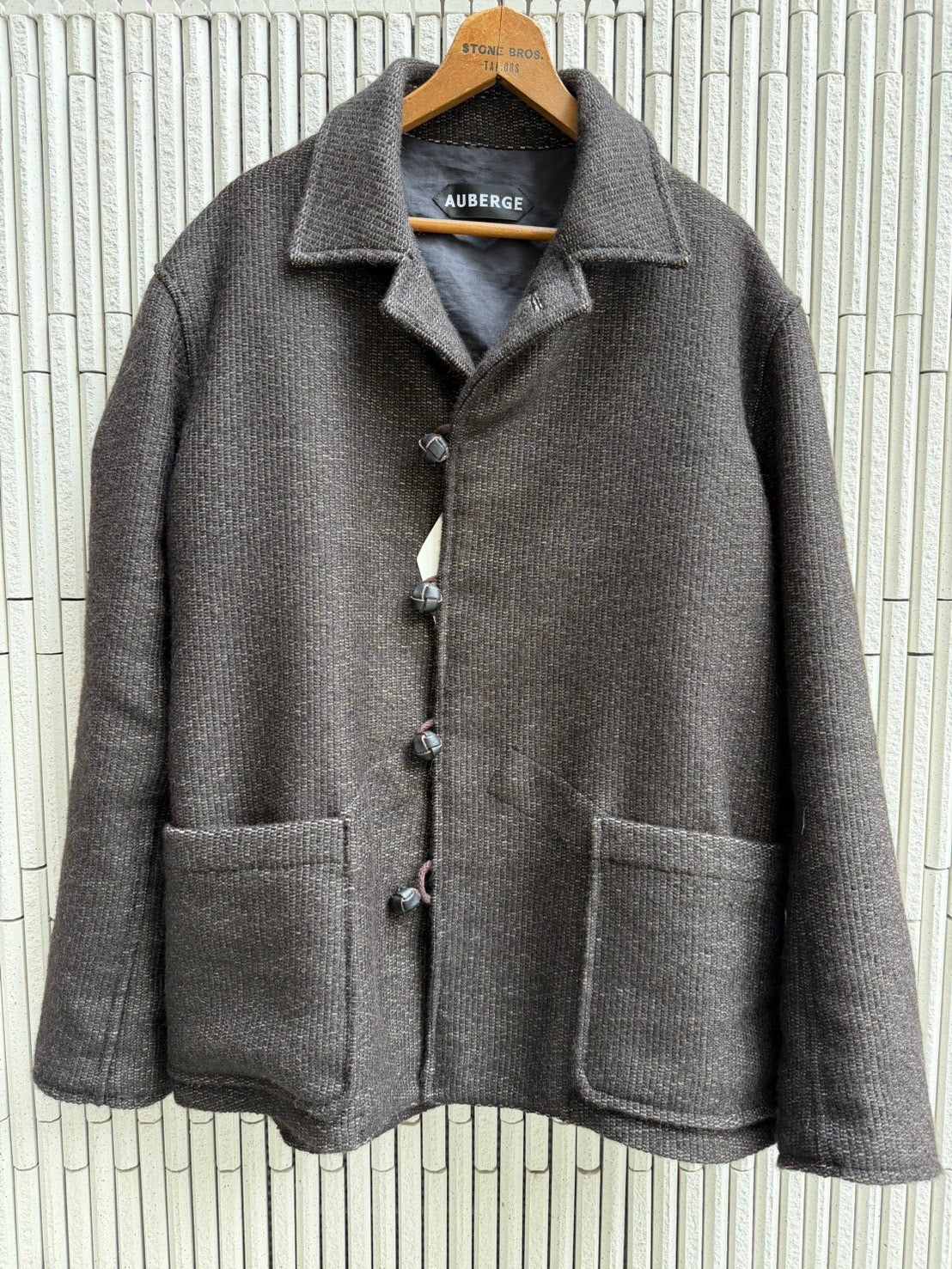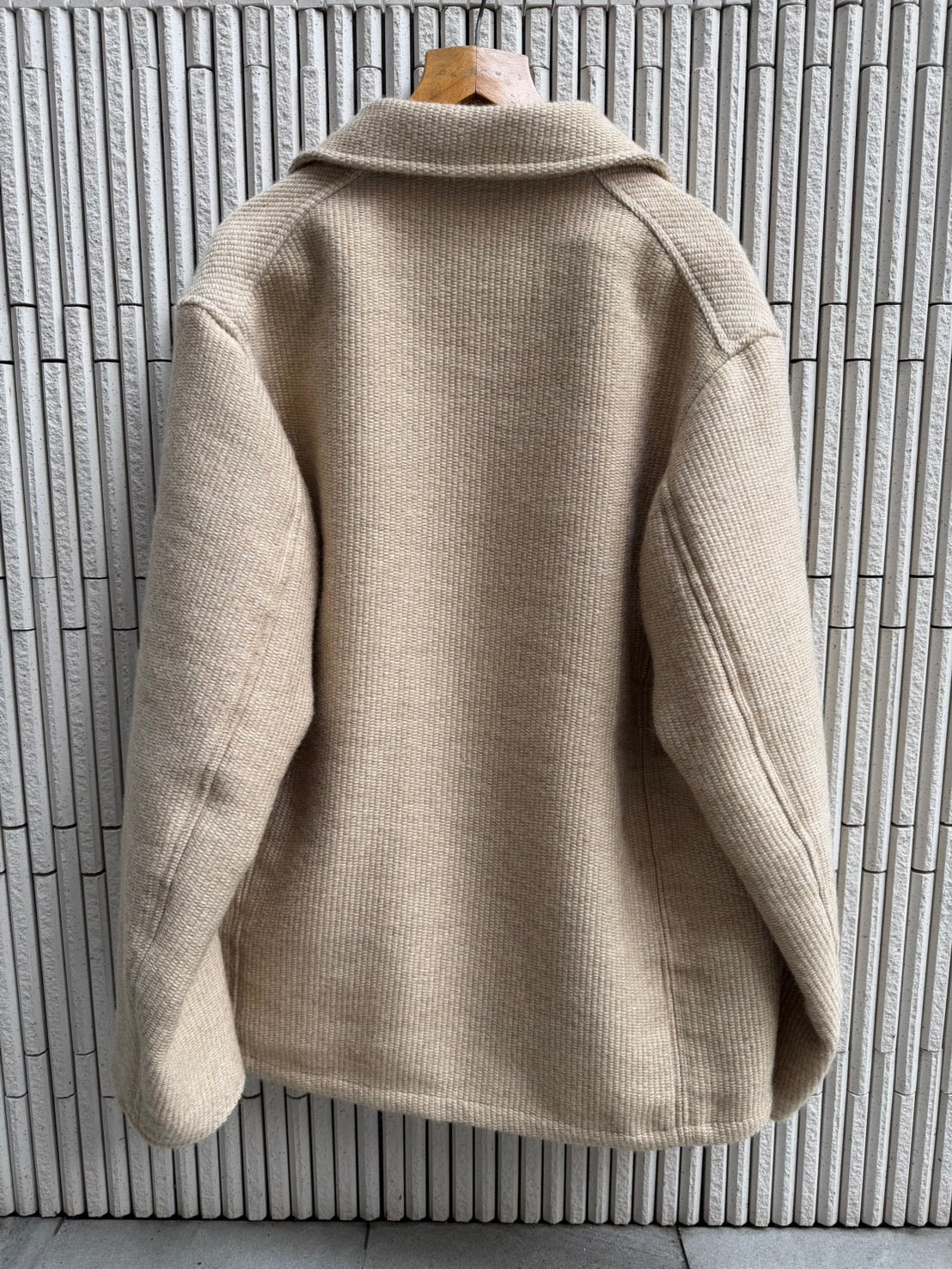 今期、誰が言い出したかは定かではありませんが、オルテガ、チマヨJK、ベストがトレンドだそうで、それならば渾身のモヘア&ブラックアルパカでネイティブイメージのオリジナルテキスタイルを作りました。しかし、このチマヨ、オルテガJKのビンテージはとてつもなく着にくい。そもそもファッションや型紙状の着やすさなど無縁のお土産工芸品なので、今回は全くオリジナルに学ばず現世代的なサイズバランスを保つオルテガフィールのJKに仕上げました。落ちる肩幅、高すぎない袖山がポイント。一部ポケットにはUKワークのディテールを盛り込みました。