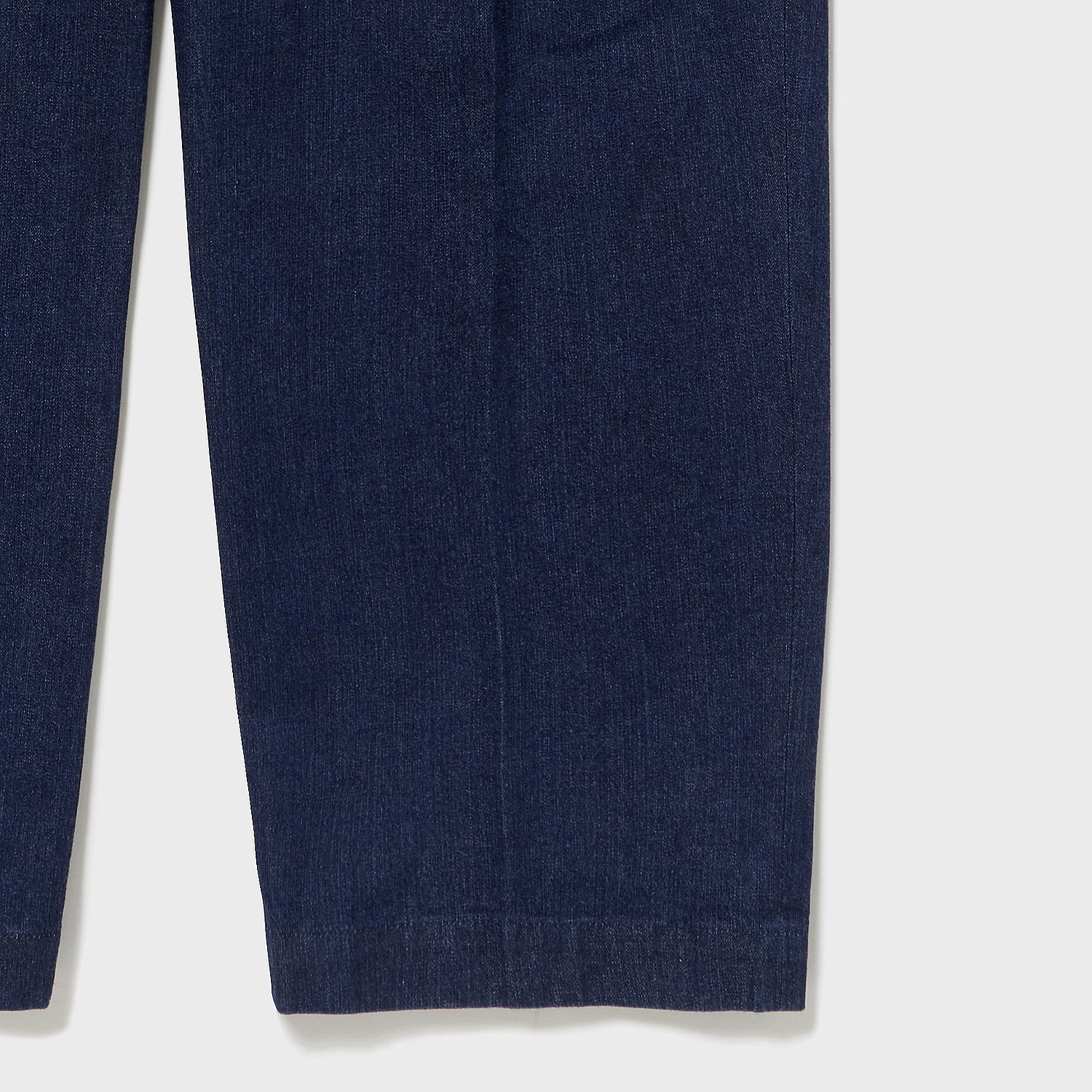 糸形状に関して、DENIM FAMILYが生産されていた1950年代当時の紡績機によるムラ形状を忠実に再現する為に幾度と試紡を重ねた完全別注糸の7/-をタテ糸に、14/-をヨコ糸に使用しています。縦糸の染色に関して混ぜ物をしていないピュアインディゴ100%の合成染料をロープ染色機で当時同様に淡色且つ青味の強い色目を再現しています。ヨコ糸に関して、20世紀初頭のライトオンスデニムは緯糸にTOP糸(綿の段階でグレー味の色を作り織り糸にする)を使うのが通例ですが、50年代のLEVISでは緯糸を電子顕微鏡で見てもかなり均一に染まっていたのでTOPでは無かった可能性も高いという判断からスレン染料でグレーに糸染めしております織りに関して旧式力織機を使用してDENIM FAMILYを解析した経緯の密度本数と2/1の織り組織でしっかりと織り上げました。